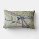 Lumbar-sized pillow with painted illustration of a blue dasher dragonfly perched on a twig