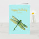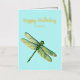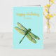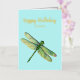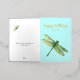 An original dragonfly painting printed in gold on this birthday card is so very beautiful against this colourful background. It is ready for your personal touches.