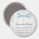Elegant and simple Save The Date magnet featuring a blue dragonfly against a gray grunge background. This design is a unique choice for announcing a modern wedding. Easy to customize with your wedding details. Click "Customize It" to find more personalization options.
