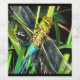 Blue Dragonfly Shimmering Wings Painting is a resting dragonfly against a green riverweed background. A gift with a winged insect theme perfect for skimmer lovers, entomologists, dragonfly lovers, insect lovers and backyard bug hunters
