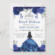 A dreamy blue Sweet Sixteen invitation featuring a beautiful black-haired princess in a flowing ball gown, surrounded by lush blue and purple florals, butterflies, and soft watercolor greenery. A delicate tiara motif crowns the design, while elegant mixed‑font typography highlights the milestone celebration with a modern, feminine touch. The rich blue palette, gentle floral details, and graceful princess silhouette create a magical, high‑end invitation perfect for an unforgettable Sweet 16 celebration.