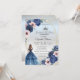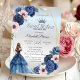 Silver glitter tiara, watercolor blue dress, and floral frame on silver background. Have fun at your quinceañera party with this elegant invitation. Invite your guests to raise a glass and join in on the fun with these festive invitations.