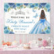 Blue Dress Dark Skin Princess Floral Birthday Banner