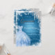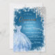 Elegant silver glitter drips, snowflakes and elegant dress on a blue background.