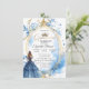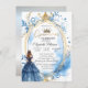 Silver glitter tiara, watercolor blue princess dress, and frame on silver background. Have fun at your quinceañera party with this elegant invitation. Invite your guests to raise a glass and join in on the fun with these festive invitations.