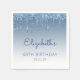 These chic, feminine fortieth (or any year) birthday party paper napkins feature a sparkly blue faux glitter drip border and blue ombre background. Personalise them with the guest of honour's name in blue handwriting script, with her birthday and date below in sans serif font.