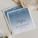 These chic, feminine 80th (or any year) birthday party paper napkins feature a sparkly blue faux glitter drip border and blue ombre background. Personalise them with the guest of honour's name in blue handwriting script, with her birthday and date below in sans serif font.