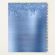 Custom elegant and girly planner featuring blue faux glitter dripping against a rose gold faux brushed metallic background. Personalise with your name in a stylish trendy white script with swashes.