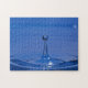 Blue drop of water in motion on a jigsaw puzzle
