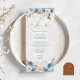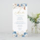 Blue Dusty Blue Boho Floral Menu Card, Baby Shower Menu, Food and Drinks Menu.
