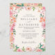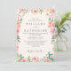 Blue Dusty Blush Pink & Peach Floral Wedding Invitation