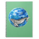 Original watercolor painting by Sandra Gale, featuring a humpback whale swimming in front of a blue watery globe representing the earth. Perfect design for whale watchers, divers, conservationists and those who love whales.