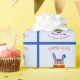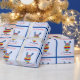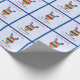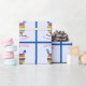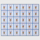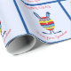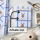 This fun Easter wrapping paper is fully customisable, just type in the boxes to change the greeting and the name or other text. The default in red script is "HAPPY EASTER" and "Love from Grandma" . The background is blue, and the cheeky easter egg shaped bunny has stripes and patterns in red blue and yellow.