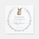 Elegant cute spring baby boy shower paper napkins featuring blue Easter bunny rabbit with the bow and blue spring flower whreath.