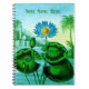 Personalised notebook in a stylised illustration of a blue Egyptian lotus plant / water lily against an exotic Far Eastern landscape