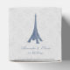 Personalise a unique wedding favour box for guests with this unique Blue Eiffel Tower Damask Wedding Favour Box. Favour box design features the Eiffel Tower against a delicate damask lace background. Personalise with the groom and bride's names along with the wedding date. Additional wedding stationery available with this design as well.
