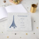 Record the guests to your big day with a Blue Eiffel Tower Damask Wedding Day Guestbook. Guestbook design features the Eiffel Tower against a delicate damask lace background. Additional wedding stationery available with this design as well.