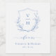 Monogrammed initials framed by elegant crest and hand illustrated botanical leaves in blue and white, simple and luxury. Great for modern classic wedding, simple formal wedding, elegant botanical garden wedding.