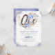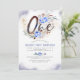Baby blue watercolor flowers calligraphy first birthday party invitations