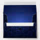 This envelope design has a bold and elegant look with a deep blue background. Black damask floral patterns sweep across the corners, creating a luxurious and ornamental contrast. At the centre, a black oval frame highlights the recipient’s name and address in white, giving the design a formal yet stylish appearance. The combination of rich blue tones with intricate black patterns makes it suitable for weddings, galas, formal invitations, and upscale correspondence.