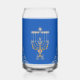 Enhance the presentation of beverages with a can glass design that features a blue background, an ornamental illustration, a menorah, and a monogram for a family name initial on the back. The design allows for convenience and ease of personalization with minimal effort required. This beer can glass is suitable for your table settings during the Hanukkah season this year. It can serve as a thoughtful gift for family and friends, a party favor for your guests, or even a stylish place setting on the table with the initials of each person sitting instead of a place card. This beautiful design will definitely make a lasting impression.