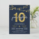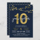 Elegant 10th Anniversary invitation featuring strings of lights and "10" in faux gold with "years together" in white against a dark blue background. Card includes a matching pattern back side. Check out matching items like stickers and stamps here https://www.zazzle.com/collections/strings_of_lights_faux_gold_celebration_collection-119311942951401241?rf=238364477188679314