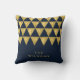 Blue Elegant Name Faux Gold Triangle Pattern Cushion