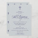 Celebrate a sacred milestone with this beautifully designed baptism invitation that embodies tradition and elegance. Set on a soft blue background, a Dark Navy Blue cross crowns the design and highlights the heartfelt message