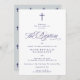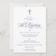 Celebrate a sacred milestone with this beautifully designed baptism invitation that embodies tradition and elegance. Set on a soft blue background, a Dark Navy Blue cross crowns the design and highlights the heartfelt message