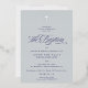 Celebrate a sacred milestone with this beautifully designed baptism invitation that embodies tradition and elegance. Set on a soft blue background, a real silver foil cross crowns the design and highlights the heartfelt message