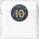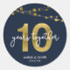 This elegant 10th wedding anniversary round sticker features strings of lights and "10" in faux gold with "years together" in white against a dark blue background.. Check out matching invitation and items like stickers and stamps here https://www.zazzle.com/collections/strings_of_lights_faux_gold_celebration_collection-119311942951401241?rf=238364477188679314