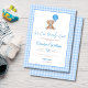 "Celebrate the upcoming arrival with this elegant 'We Can Bearly Wait' baby shower invitation. Featuring a sweet teddy bear and a charming blue gingham chequered design, this invitation exudes a soft, playful elegance. The gentle blue tones and whimsical details make it the perfect way to invite loved ones to join in welcoming your little one."