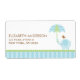 Address labels featuring a cute blue elephant and a bird holding an umbrella. Perfect design for baby showers, birth announcements or children's birthday parties.