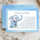 Encourage guests to help build baby’s first library with this adorable book request card, featuring a sweet watercolor elephant and soft jungle greenery. A perfect match for your blue elephant or safari-themed baby shower, this enclosure card invites guests to bring a book instead of a card—creating lasting memories for both baby and parents. Tuck it inside your invitations to add a heartfelt, thoughtful touch to your celebration.