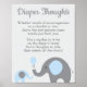 Blue Elephant Baby Shower Diaper Thoughts Sign