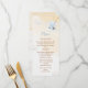 Present your party treats in style with this charming baby shower menu card. A sweet watercolor elephant swinging on a fluffy cloud beneath golden stars creates a dreamy nursery sky scene. Perfect for displaying food and dessert options while adding a soft, magical touch to your baby boy celebration.