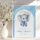 Welcome guests with this charming baby shower sign featuring a sweet watercolor elephant, soft blue florals, and jungle greenery. Designed for a baby boy celebration, this safari-themed welcome sign is perfect for the entryway, gift table, or photo backdrop. It sets a warm and cohesive tone for your event while adding an extra touch of cuteness. Customise the text to make it personal and perfectly suited to your shower theme.