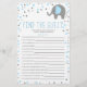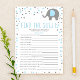 Blue Elephant Find Guest Baby Shower Game Stationery