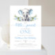 Blue floral elephant little peanut boy 1st birthday invitation.