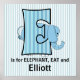 Our elephant makes a fun Letter E poster for your child's room is in a Blue Striped Prints with their initial and personalised with their name. Add a framed for a special addition to their room and one they are likely to cherish and pass on to their own children. Elephant graphic by Digiscraps