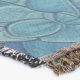 A quality printed throw has its advantages. This is a much finer weave throw than its loopier cousins, and though lighter, it is worth the investment for custom room accessorizing. The back is much prettier than the typical brown, and the fringe on the long sides very vivid, the selvage nicely done. Before photographing, I washed the throw in cold water, delicate, with a thicker woven throw the same size. On tumble dry low, this throw was dry in half the time as the other. This is a very practical quality if you use throws for furniture covers or to wrap up in frequently. The sleekness of the fabric makes it a great layer for accenting or protecting without the feeling of sitting on too much stuff. Perfect for napping or when you feel a light chill coming on. The color printing is beautiful and on this fabric, matched the design and color of my Photoshop image. This is an advantage for blending room fabrics and colors. The fringe on the short sides prints the colors from the design image and therefore varies from the side fringe. I streaked a white fractal line through the plaid pattern to give the illusion of weaving. This printed as crisp as an illusory thread, and put some white in the short side fringe, showing another advantage of print vs loomed- for artistic purposes, line lines, detail, and color integrity can be planned and preserved. My loomed throws have color limitations and more of a needlepoint texture. Print throws reproduce an exact image. The throw felt a little stiff straight out of the package, but this went away in the first delicate wash. Of course I searched the wash water for ink or bleeding and there was none.
