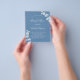 A dusty blue background, decorated with eucalyptus stems, sprigs. Personalise and add a name and party details.