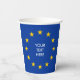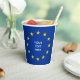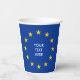 Blue European Union flag custom Paper Cups. Disposable party supplies with EU flag or Europe. Great for national events, international wedding, BBQ, political party, Brexit and other occasions.