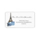 A white background, along with the Eiffel Tower and 2 blue vintage hat boxes with a pair of strappy sandals are the setting of this contemporary design. Completely customise the text on this vintage return address label to fit your needs.
