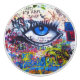 A modern distressed urban spray painted abstract graffiti text on a city wall, with a blue evil eye and multicolored custom text template. Create your own personal vandalism on this unique grunge street art urban skater style design. Easily personalised by adding your own name text or tag .