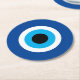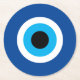 Blue Evil Eye round paper drink coasters for party. Blue mati Greek / Turkish symbol for protection and good luck. Custom table decor for home, party, wedding, bar, restaurant, office etc.