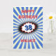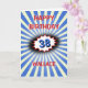 The background for this eye-catching birthday card is an explosion in blue and green, with a red-edged cloud burst to emphasise the number. There is a vintage comic retro vibe to the design with crisp bright colours and images. Edit the Happy Birthday greeting, edit the number, change the name, and personalise the message inside as well. Or you can use the default message "Another birthday? Time to celebrate!"