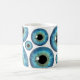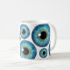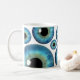 Blue Eye Iris © Sunny Mars Designs. Cool, fun custom printed blue eyeball classic mug with a trendy, modern, beautiful, unique, freaky, creepy, weird and twisted graphic illustration of a striking big blue realistic eyeball iris of an eye. Other colour eyeball designs are also available in store.