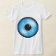 You really get the feeling with this blue eyeball that it is starring right at you. This blue eye design is a lovely shade of blue and has a deep black pupil. This blue eye design looks great on this womens t-shirt. Perfect for yourself or as a gift