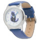 The blue band is the right color for a boys watch. My grandson loves lacrosse and the watch is easy to put on. He is ten years old. The lacrosse picture is very clear and I like the blue hands on the watch. It's good for teaching time.